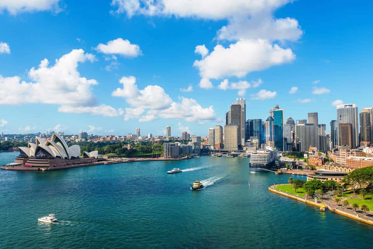 Flug nach Sydney (zum Beispiel über Hongkong mit der renommierten Airline Cathay Pacific).