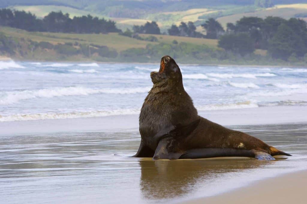 Weiter im Süden lohnt sich ein Abstecher zum Shag Point (Matakaea). Hier kann man sich die runden Felsformationen namens Shag Point Boulders anschauen, in denen man in der Vergangenheit uralte Fossilien fand. Am imposantesten war bisher das mindestens 66 Millionen Jahre alte und 7 Meter große Skelett eines Plesiosauriers, das jetzt in der University of Otago (Webseite) ausgestellt ist. Am Ende der Straße führt ein kurzer Weg mit Aussichtspunkten zu einer Kolonie Neuseeländischer Seebären. Mit etwas Glück sieht man manchmal sogar Delfine und Wale. Überdies bewohnten Maori dieses Gebiet schon seit vielen Jahrhunderten, weshalb sich hier uralte Ruheplätze der Verstorbenen und heilige Stätten befinden. Beim Picknicken sollte man deshalb nur die vorgesehenen Bereiche verwenden.