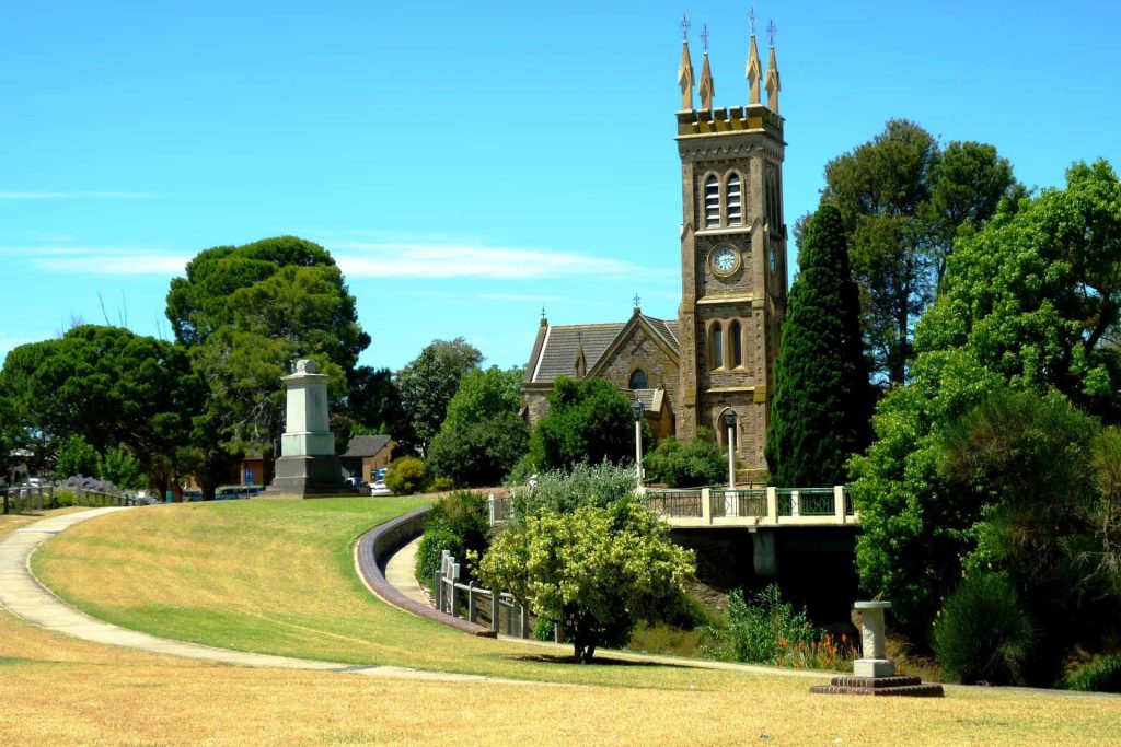 Strathalbyn (ca. 6.500 Einwohner) befindet sich ebenfalls im Landesinneren der Fleurieu Peninsula und liegt etwa 50 Kilometer nordwestlich von Victor Harbor sowie circa 60 Kilometer südöstlich von Adelaide. Der 1839 gegründete Ort mit seinem netten Park am Angus River und der alten St. Andrew’s Church zeichnet sich durch eine gelassene Atmosphäre, hübsche Gebäude und eine malerische Lage aus. Das Strathalbyn Police Station and Courthouse Museum (Webseite), die historische High Street, diverse Kunstgalerien und gemütliche Cafés sind andere Highlights. Darüber hinaus findet immer im August eine große Antiquitäten-Messe statt und jeden Donnerstag kann man den Viehmarkt besuchen.
