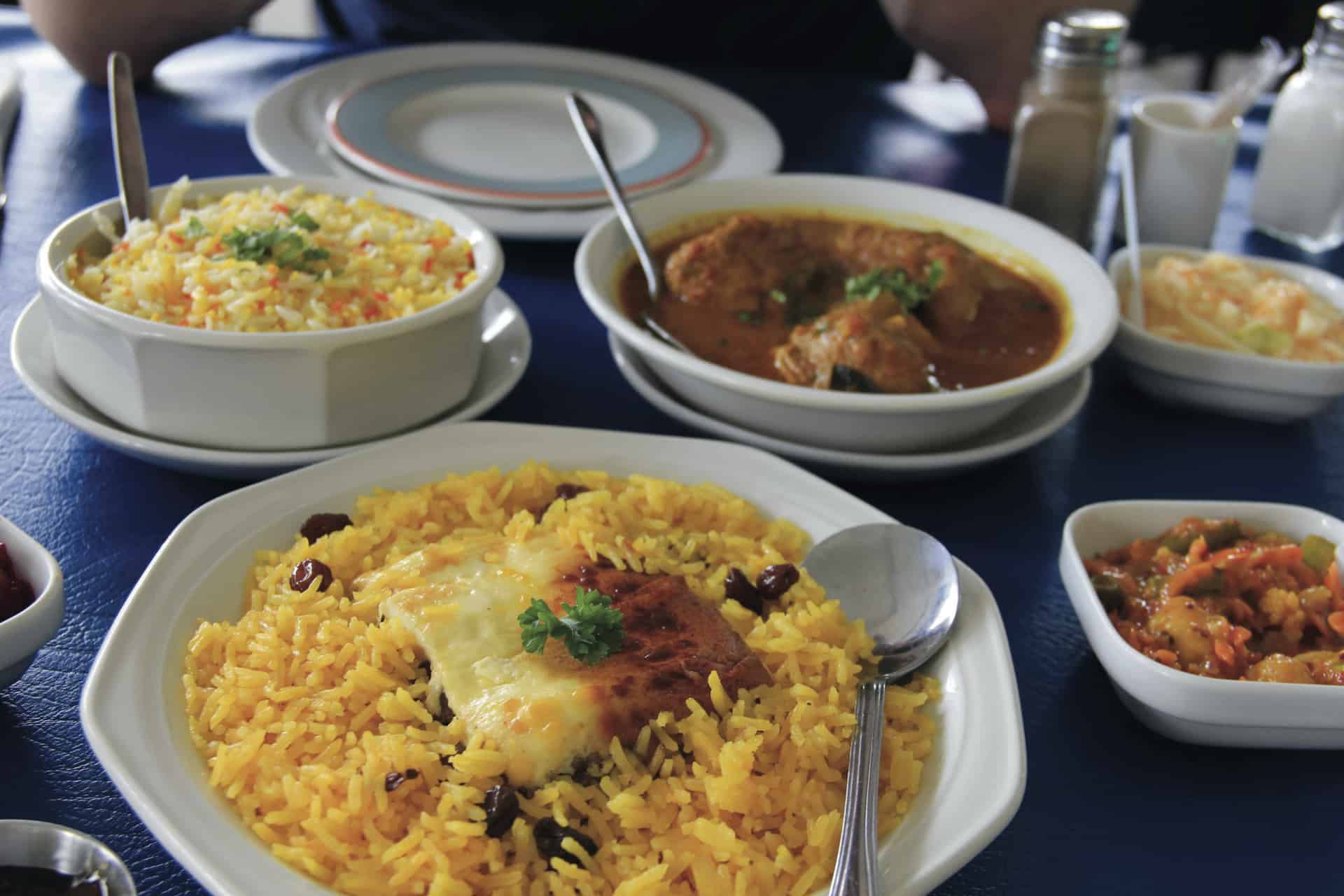 Bo-Kaap: In den familiär geführten Restaurants von Kapstadts buntem Viertel entstehen authentische Cape-Malay-Gerichte nach traditionellen Gewürzrezepten vergangener Generationen – ein absolutes Highlight unter den Sehenswürdigkeiten Kapstadts.