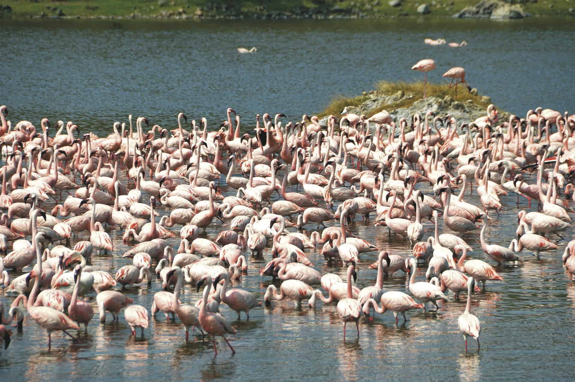 Momella-Seen: Die malerische Seenlandschaft beheimatet zahlreiche Flamingos und andere Wasservögel, die in der unberührten Natur beste Lebensbedingungen vorfinden.